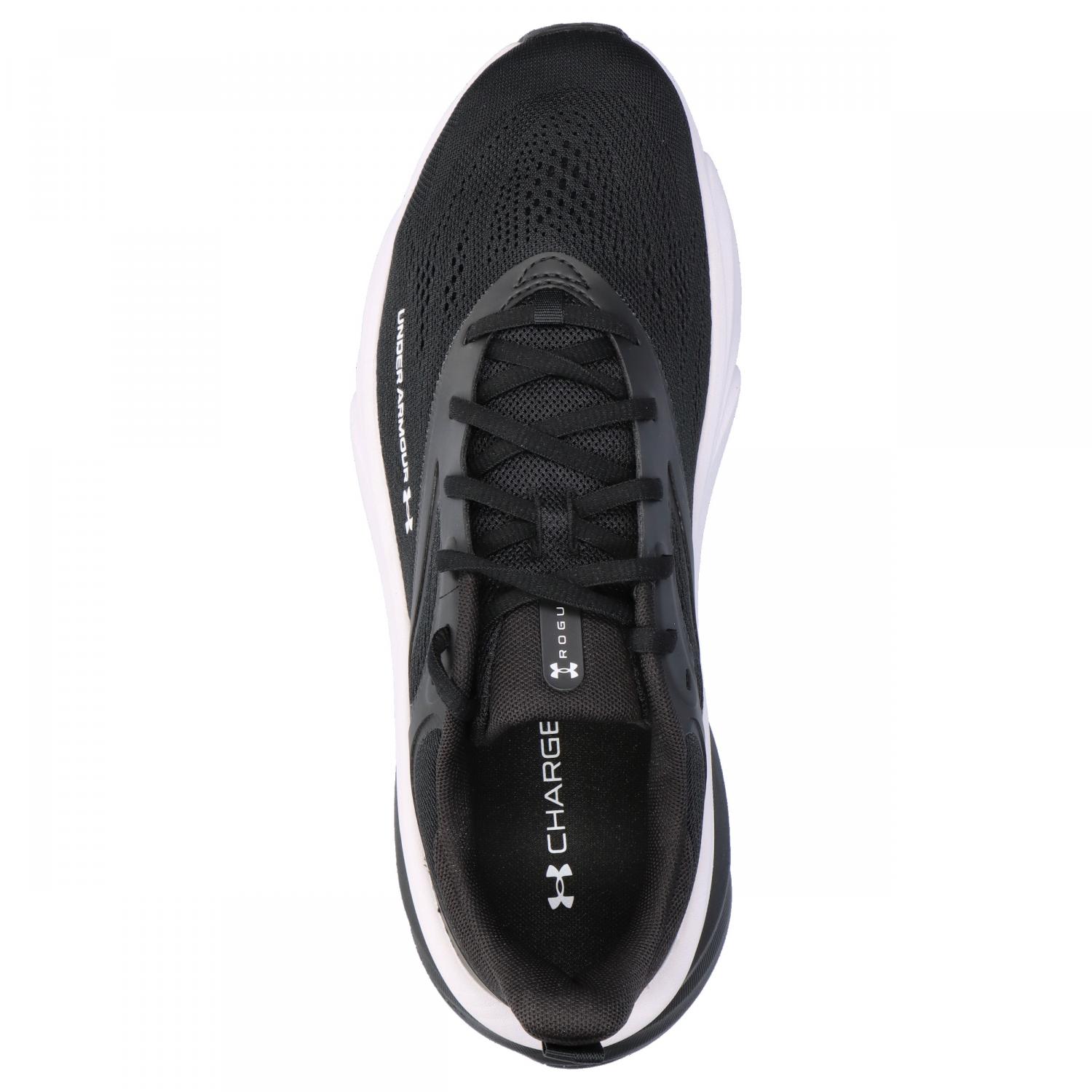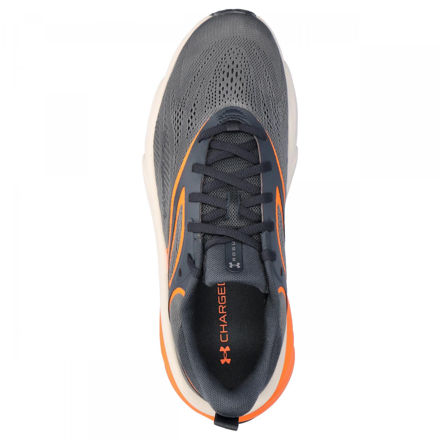 Under Armour Herren Laufschuhe Rogue 6. Die Under Armour Herren Laufschuhe Rogue 6 bieten die perfekte Kombination aus Leichtigkeit, Komfort und Reaktionsfreudigkeit für ambitionierte Läufer. Das innovative, atmungsaktive Mesh-Obermaterial sorgt für einen hochwertigen Look und wird durch TPU-Einsätze ergänzt, die den Mittelfuß stabilisieren und sicheren Halt bieten. Eine weiche, antimikrobielle Einlegesohle erhöht den Tragekomfort spürbar, während die Charged Cushioning® Mittelsohle in Verbindung mit zusätzlicher Polsterung für hervorragende Aufpralldämpfung, hohe Energierückgabe und ein dynamisches Laufgefühl sorgt. Die strapazierfähige Gummi-Außensohle gewährleistet zuverlässige Bodenhaftung und Langlebigkeit auf unterschiedlichsten Untergründen. Mit einem dezenten Logo, einem Obermaterial aus 25 % recycelten Materialien, einem Gewicht von nur 275 g und der neutralen Auslegung ist der Rogue 6 ideal für Läuferinnen und Läufer, die eine ausgewogene Balance zwischen Flexibilität und Polsterung suchen. Obermaterial: Sonstiges Material;Textil. Futter und Decksohle: Textil. Laufsohle: Sonstiges Material.