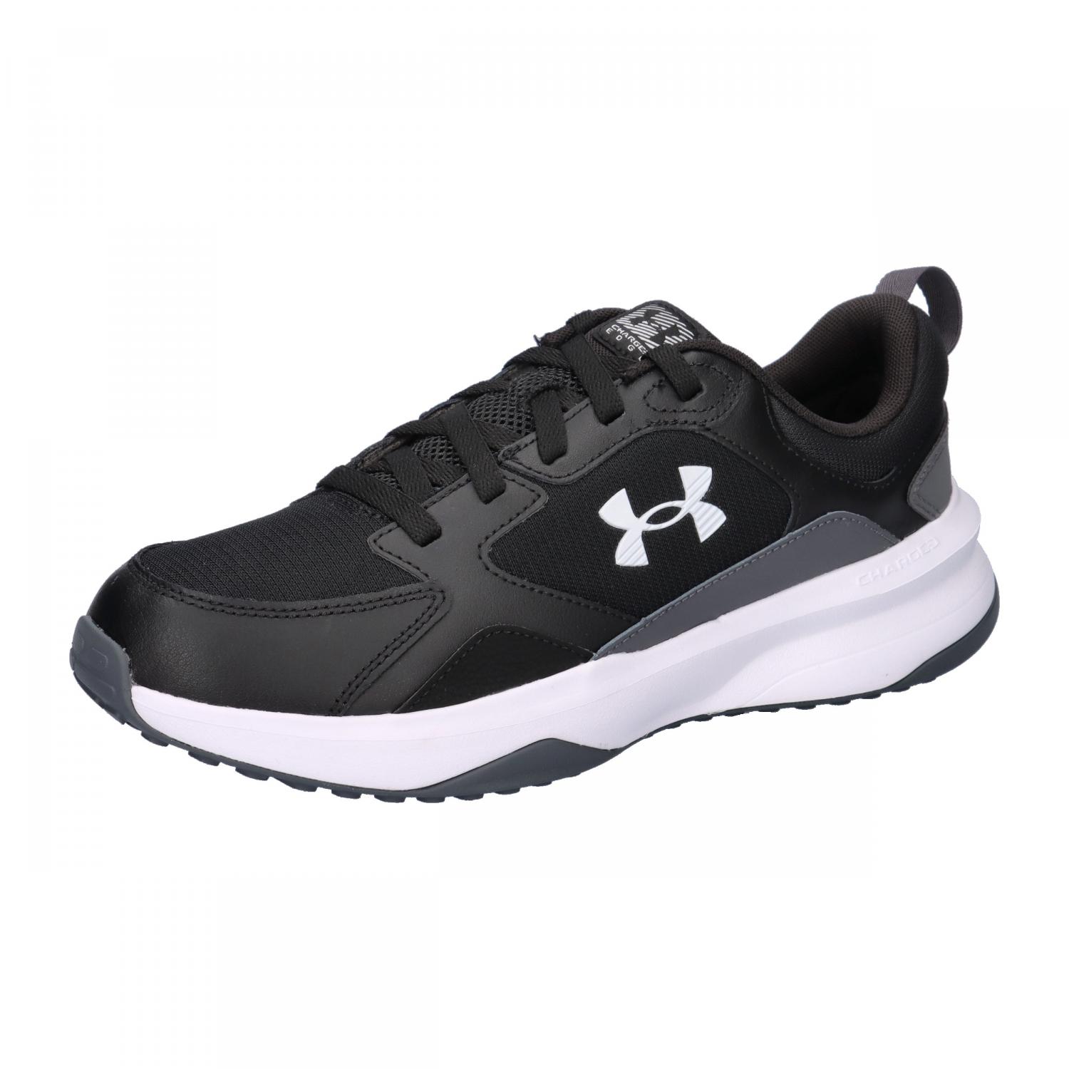 Under Armour Herren Trainingsschuhe UA Charged Edge. Diese Schuhe sind für das Training im und außerhalb des Fitnessstudios konzipiert. Charged Cushioning® schützt vor Stößen, Lederauflagen sorgen für eine stabile Passform und das Mesh-Obermaterial ist leicht und atmungsaktiv. Atmungsaktives Mesh-Obermaterial mit Leder- und Synthetikauflagen für Strapazierfähigkeit und Stabilität bei dynamischen Bewegungen. Zweilagige Ortholite-Einlegesohle für ultimativen Tragekomfort. Charged Cushioning®-Mittelsohle verwendet formgepressten Schaumstoff für ultimative Reaktionsfähigkeit und Strapazierfähigkeit. Langlebige Vollgummi-Außensohle mit strategischem Muster für Drehbewegung und Bodenhaftung. Obermaterial: Textil, Sonstiges Material. Futter und Decksohle: Textil. Laufsohle: Sonstiges Material.