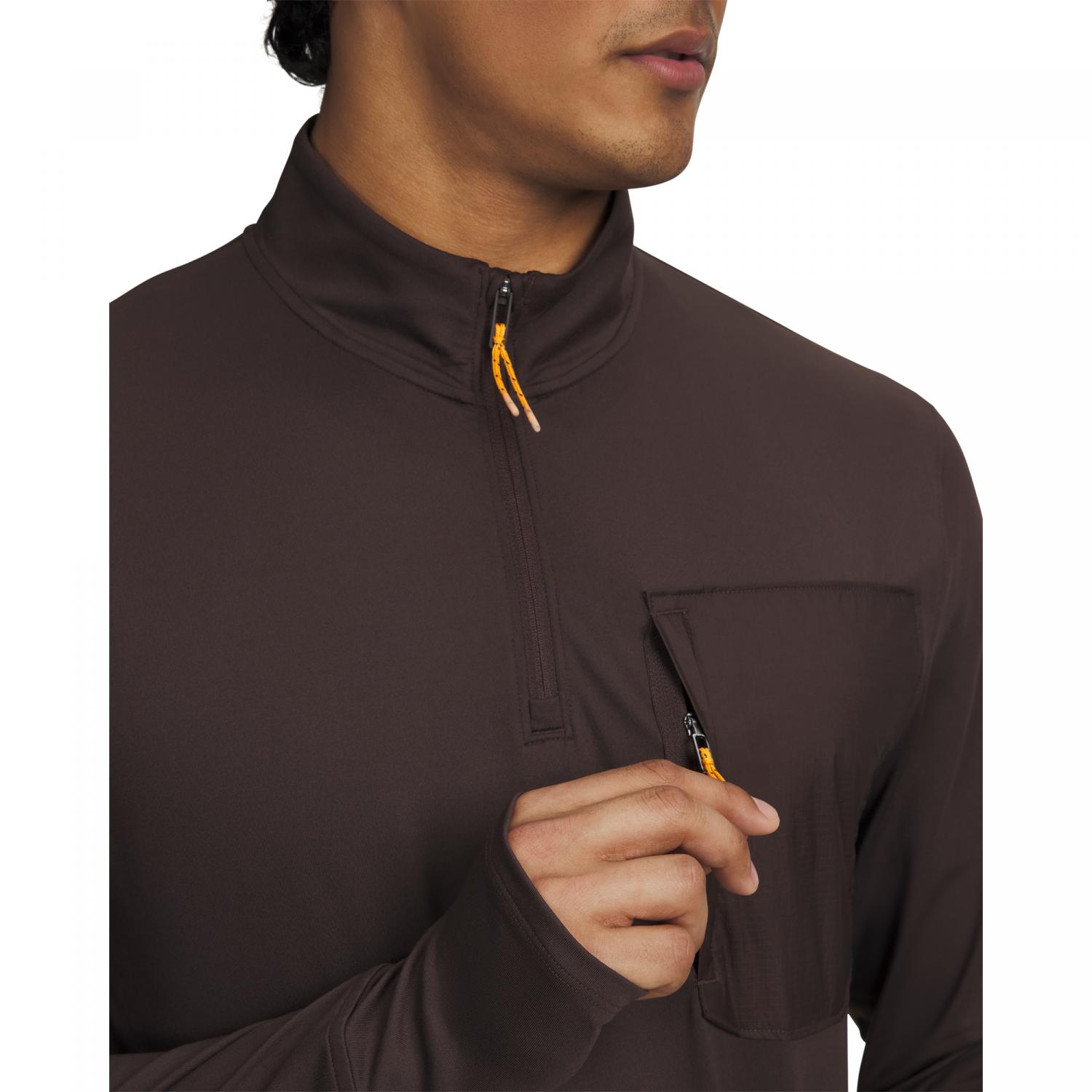 Under Armour Herren Trainingstop Trail Run 1/4 Zip. Diese Laufbekleidung wurde speziell für die Herausforderungen des Trailrunnings entwickelt und überzeugt durch Leichtigkeit, hohe Strapazierfähigkeit und schnelltrocknende Eigenschaften. Das robuste Material ist zugleich weich, atmungsaktiv und angenehm leicht, wodurch es maximalen Komfort und vielseitige Einsatzmöglichkeiten bietet. Dank seiner elastischen Struktur passt es sich deinen Bewegungen optimal an und unterstützt dich auch auf anspruchsvollen Trails. Eine sichere Brusttasche mit Reißverschluss und gewebter Verstärkung sorgt für zusätzliche Stabilität und bietet Platz für wichtige Essentials. Eine elastische Schlaufe ermöglicht ein einfaches Aufhängen, während seitliche Belüftungsschlitze am Saum die Luftzirkulation verbessern und den Tragekomfort erhöhen. Die geruchshemmende Technologie reduziert zudem die Bildung unangenehmer Gerüche und sorgt für langanhaltende Frische. Material: 88% Polyester, 12% Elasthan.