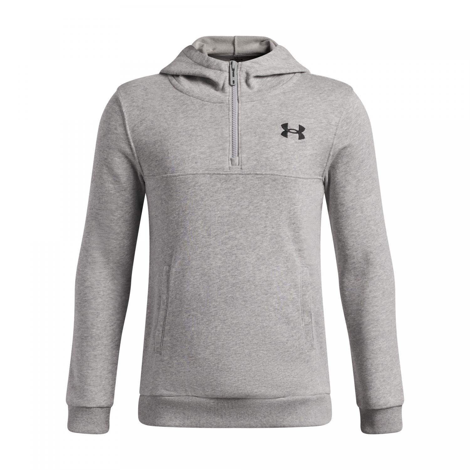 Under Armour Rival Lightweight Kapuzenpullover mit ¼-Zip für Jungen. Dieser leichte French-Terry-Stoff bietet das weiche Tragegefühl von Fleece, ist aber nicht so warm wie gebürsteter Fleece. Der perfekte Begleiter für kühle Sommernächte oder morgendliche Trainingseinheiten. Leichtes French-Terry ist außen glatt und innen geschmeidig und warm. Das Material leitet Schweiß ab und trocknet sehr schnell. Kängurutasche vorne. ¼-Zip vorne für Lagenlooks sowie Kapuze und Stehkragen für zusätzlichen Schutz. Rippbündchen am Saum und an den Ärmeln. Material: 80% Baumwolle, 20% Polyester.