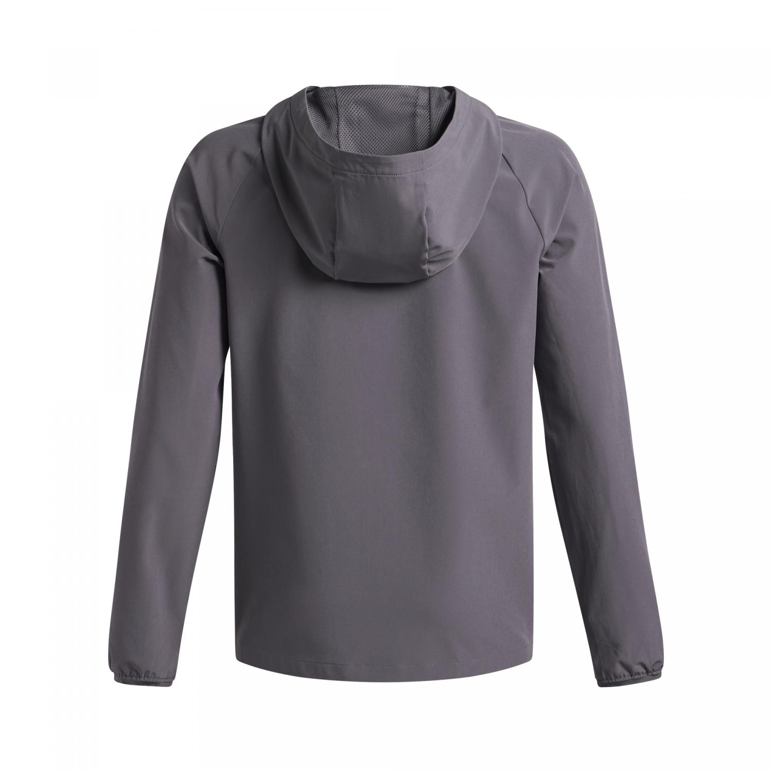 Die Under Armour Kinder Sweatjacke Vibe Webstoff ist ein leichter und funktionaler Windbreaker, der optimalen Schutz bei wechselnden Wetterbedingungen bietet. Dank der integrierten UA Storm Technologie ist das Material wasserabweisend, ohne die Atmungsaktivität einzuschränken. Das strapazierfähige Stretchgewebe sorgt für hohen Tragekomfort und passt sich jeder Bewegung an, unterstützt durch den 4-Wege-Stretch für maximale Bewegungsfreiheit. Seitentaschen mit Reißverschluss bieten sicheren Stauraum, während elastische Bündchen für einen guten Sitz sorgen. Die fluorfreie wasserabweisende Beschichtung rundet die funktionale Ausstattung ab. Material: 87% Polyester, 13% Elasthan.