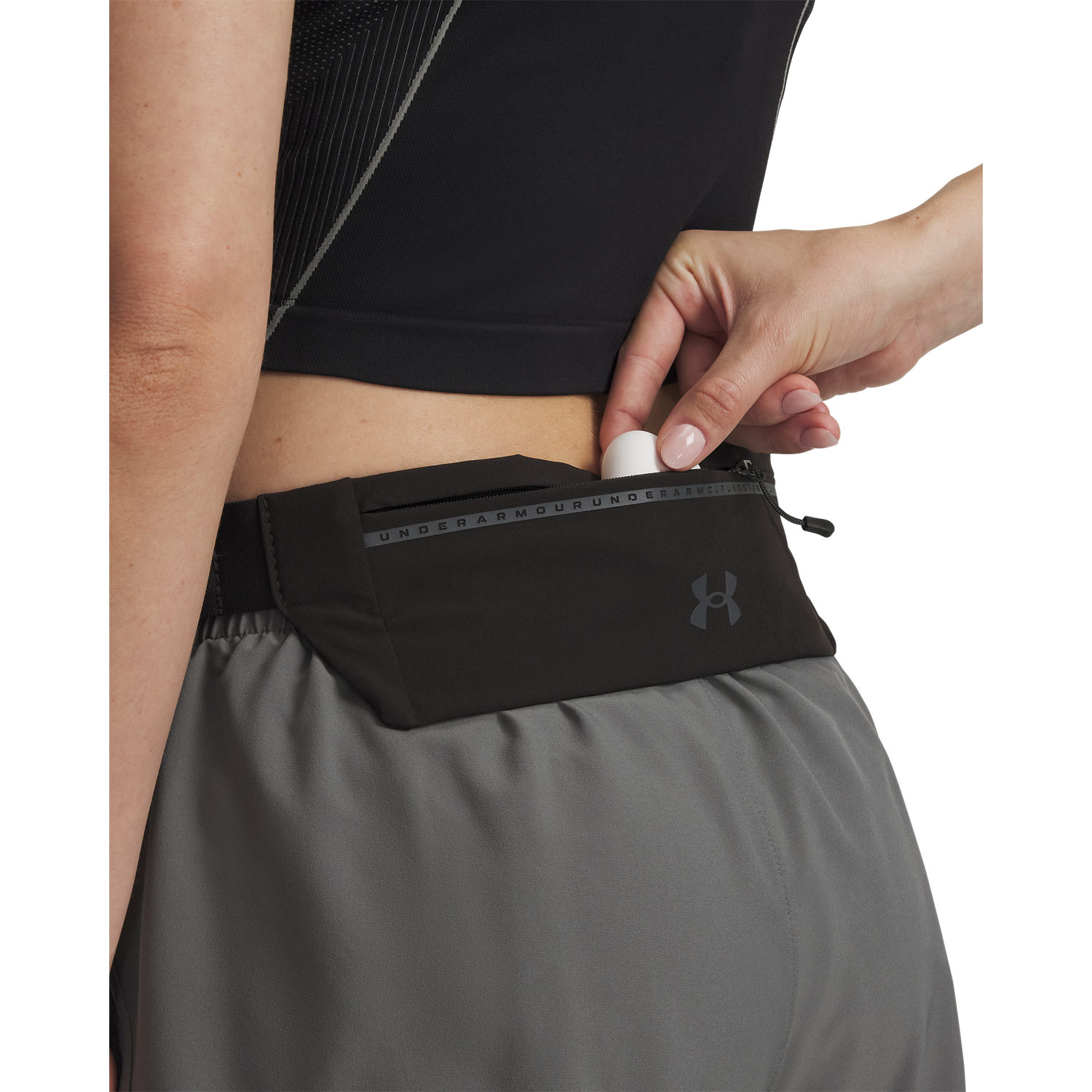 Under Armour Laufgürtel Launch Run Belt. Reflektierende Details für bessere Sichtbarkeit bei Läufen im Dunkeln. Verstellbarer Riemen mit flachem Schnallenverschluss für eine sichere, individuelle Passform, die bündig mit dem Körper abschließt. Sicheres Hauptfach mit Reißverschluss und flachem, verstecktem Reißverschluss. Die erweiterbare UA Speedpocket auf der Rückseite ist wasserabweisend und hält. Ihr Telefon sicher, ohne dass es hüpft. Die wasserabweisende UA Storm-Technologie hält Ihre wichtigsten Dinge trocken.