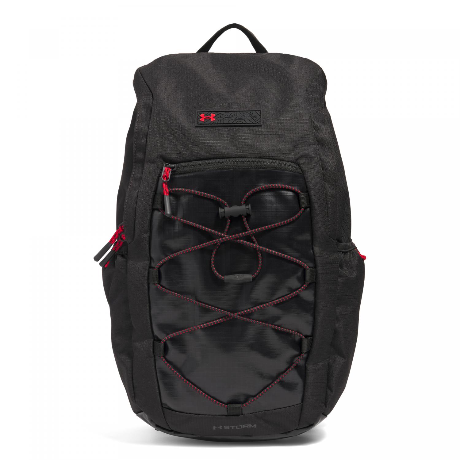 Under Armour Rucksack Summit Trail Backpack. Mit diesem Rucksack bist du bereit für jedes Abenteuer. Sie ist extrem langlebig, wasserabweisend und du kannst all deine Sachen im Handumdrehen darin verstauen und wieder auspacken. Der gepolsterte, atmungsaktive Einsatz auf der Rückseite und die UA LEVELED™ Riemen sorgen für einen besonders bequemen Tragekomfort. Wasserabweisende UA Storm-Technologie hält deine Ausrüstung trocken. Robustes Ripstop-Gewebe mit PU-Beschichtung für mehr Schutz auf der Vorderseite. Das LEVELED™-Riemensystem stellt sicher, dass die Riemen gleichmäßig eingestellt sind – für eine ausgewogene Gewichtsverteilung. Großes Hauptfach mit Zip und Innennetztasche mit Zip und Trinkblasenfach. Wertsachentasche mit Zip auf der Vorderseite und einstellbarer Gummizug zum Verstauen einer Jacke oder von Schuhen für einfaches Tragen. 2 Taschen für Trinkflaschen an den Seiten. Brustclip und verstaubarer Hüftgurt für einen noch sichereren Halt. Maße: 29 x 47 x 17cm. Volumen: 20 Liter. Material: 100% Polyester.