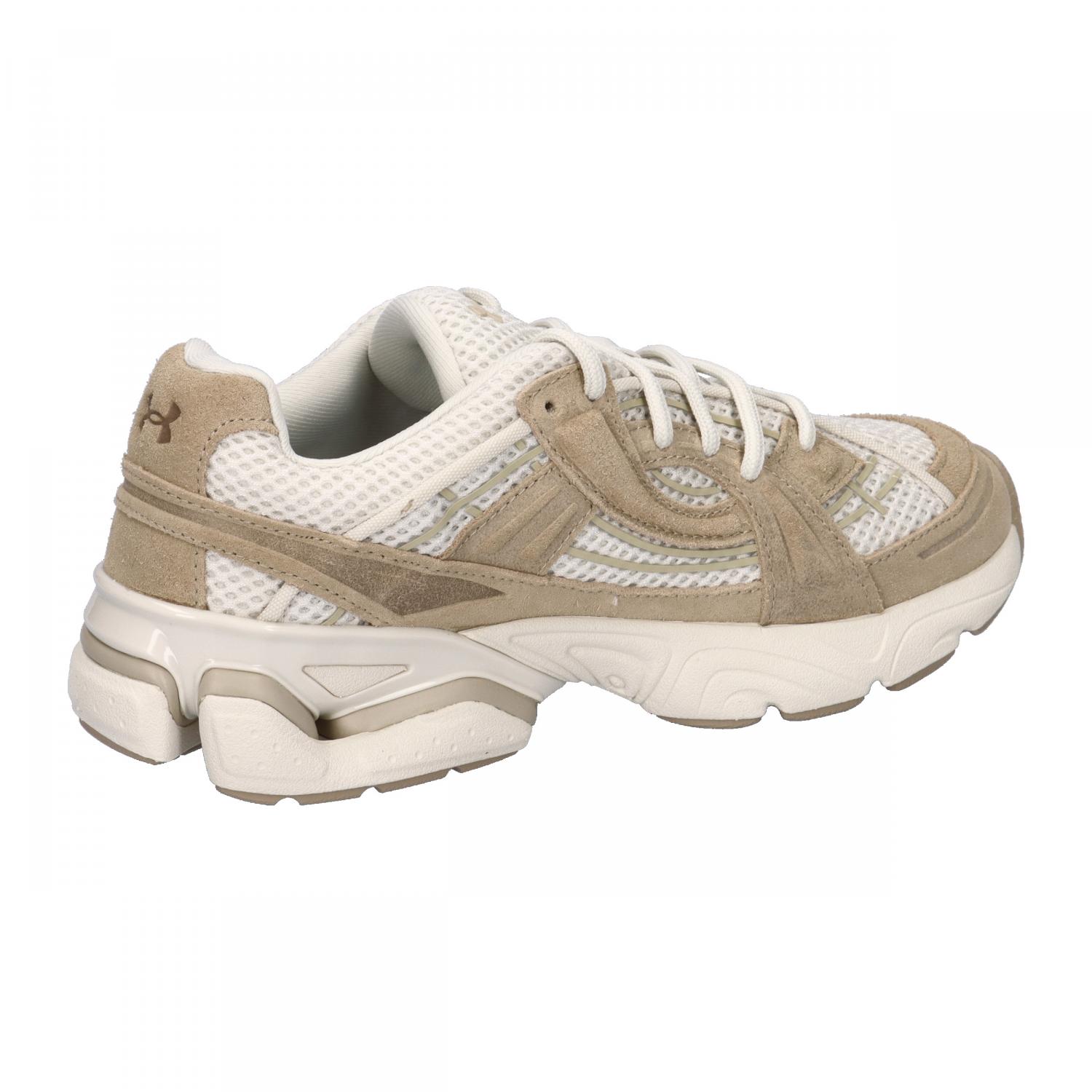 Under Armour Unisex Sneaker UA Sola Wildleder. Der Under Armour Unisex Sneaker UA Sola Wildleder überzeugt mit klaren Linien, fein ausgearbeiteten Details und markanten Retro-Elementen, die die sportliche DNA der Marke widerspiegeln und ihn zum vielseitigen Begleiter für jede Gelegenheit machen. Das atmungsaktive Mesh-Obermaterial wird durch strapazierfähige Wildleder-Einsätze und auffällige Branding-Details ergänzt. Eine TPU-Ferse im Retro-Design sowie spezielle Cartilage-Nocken sorgen für zusätzlichen Halt und Stabilität, während die leichte, gepolsterte EVA-Mittelsohle im futuristischen Look hohen Tragekomfort bietet. Abgerundet wird der Sneaker durch eine alltagstaugliche Vollgummi-Außensohle für zuverlässige Bodenhaftung. Obermaterial: Leder. Futter und Decksohle: Textil. Laufsohle: Sonstiges Material.