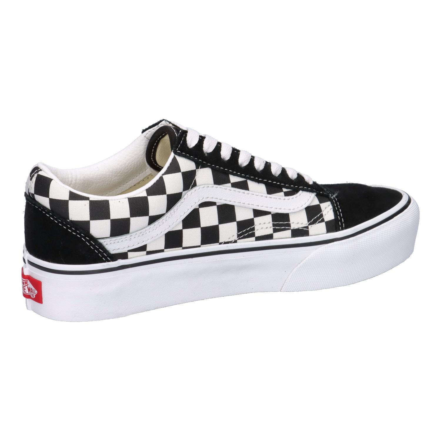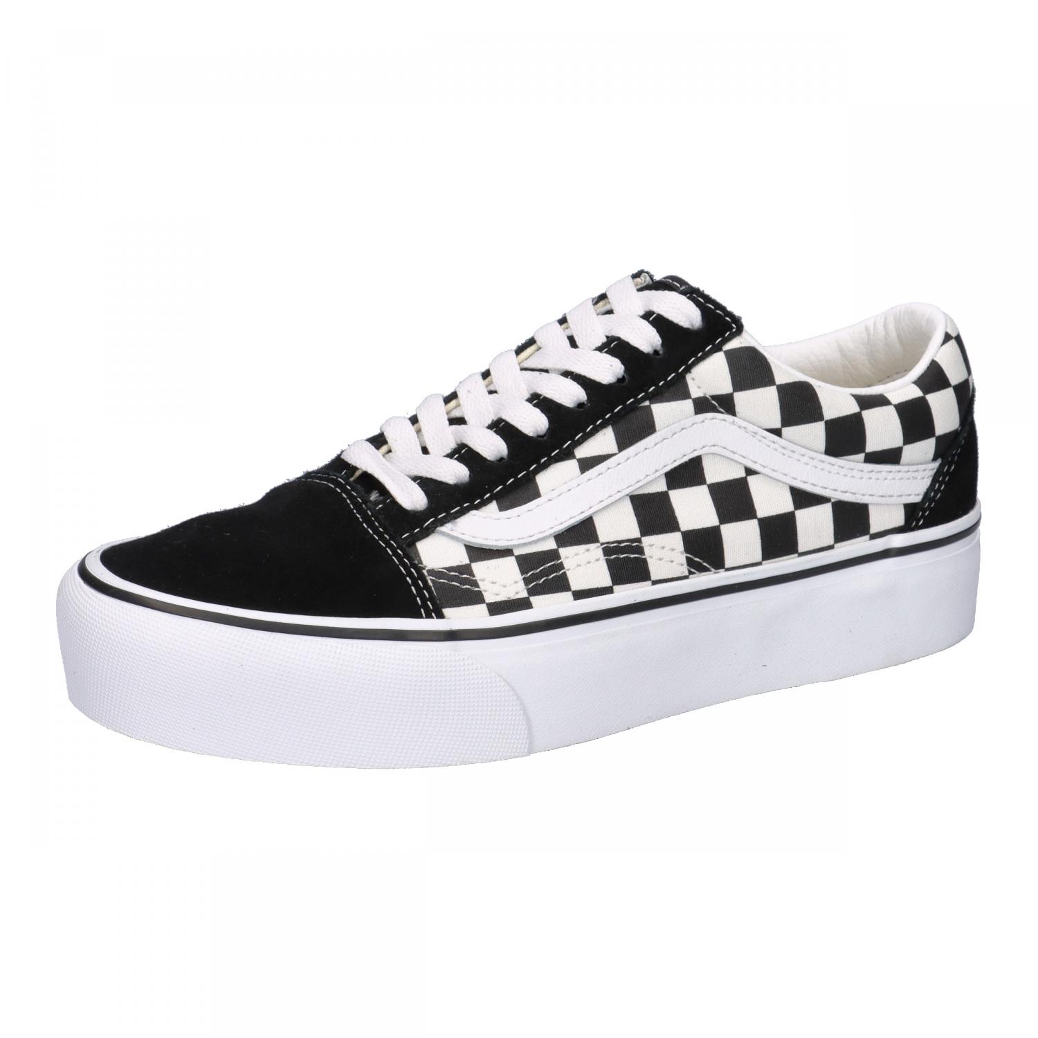 Vans Damen Sneaker Old Skool Platform. Die Old Skool Platform Schuhe kombinieren die klassische Skateschuh-Silhouette mit Seitenstreifen mit einem Obermaterial aus robustem Canvas und Veloursleder und verstärkten Zehenkappen, die vor Abnutzung schützen. Außerdem verfügen sie über eine gepolsterte Manschette für mehr Halt und Flexibilität sowie eine Gummi-Plateausohle in charakteristischer Waffel-Optik. Obermaterial: Leder, Textil. Futter und Decksohle: Textil. Laufsohle: Sonstiges Material.