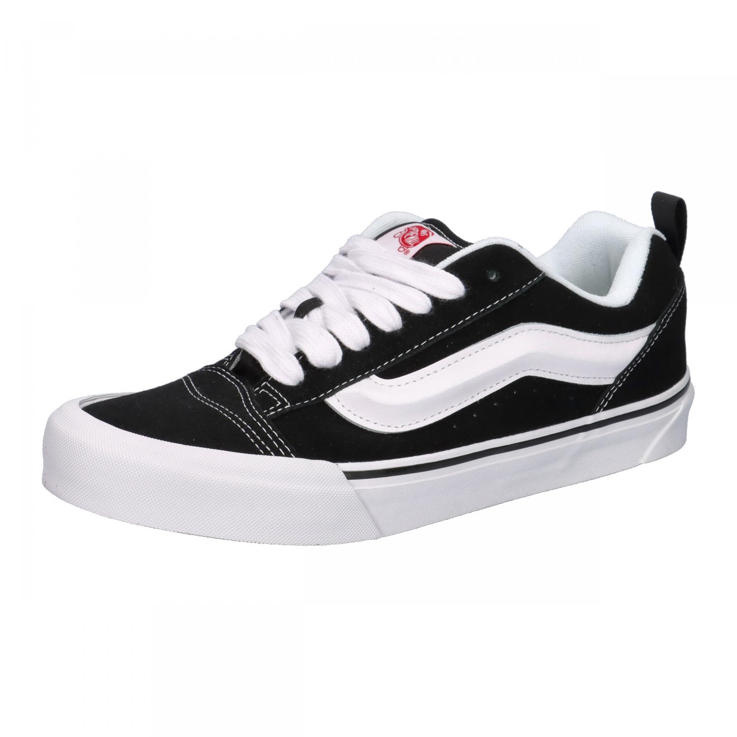 Vans Unisex Sneaker Knu Skool. Der Knu Skool ist ein neu aufgelegtes Modell aus den 90er Jahren, als Skateschuhe besonders gepolstert waren. Diese Low-Top-Silhouette ist aus robustem Wildleder gearbeitet und mit einer großen, gepolsterten Zunge und einem Knöchelkragen versehen. Der Oversized-Look ist an den ursprünglichen Old Skool angelehnt. Der legendäre Vans-Sidestripe™ wurde als gepolsterte 3D-Form neu interpretiert und verleiht dem Design das gewisse Etwas. Die zusätzlichen Fersenschlaufen ermöglichen einen einfachen Ein- und Ausstieg. Obermaterial: Leder. Futter und Decksohle: Textil. Laufsohle: Sonstiges Material.