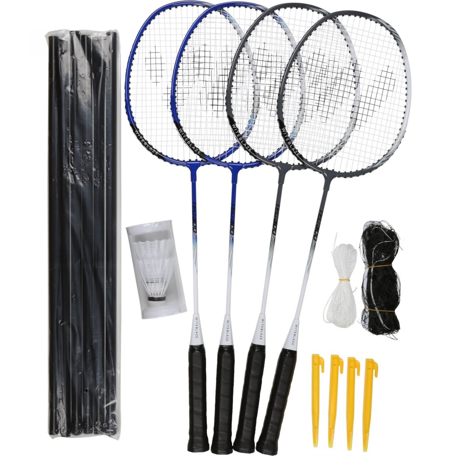Witeblaze Badminton Set V TEC 300 FAMILY SET ist ein Badminton-Set für Familie und Spass mit Freunden. Set bestehend aus 4 Tec 300 Schlägern (Stahl, verschiedene Farben) und 2 Federbällen in transparenter Röhre verpackt. Enthält Netz, Gestänge und Abspannleinen sowie eine Spielanleitung. Set für den Transport in einer 420D Nylon Tragetasche mit Griff. Material: Aluminium/Stahl.